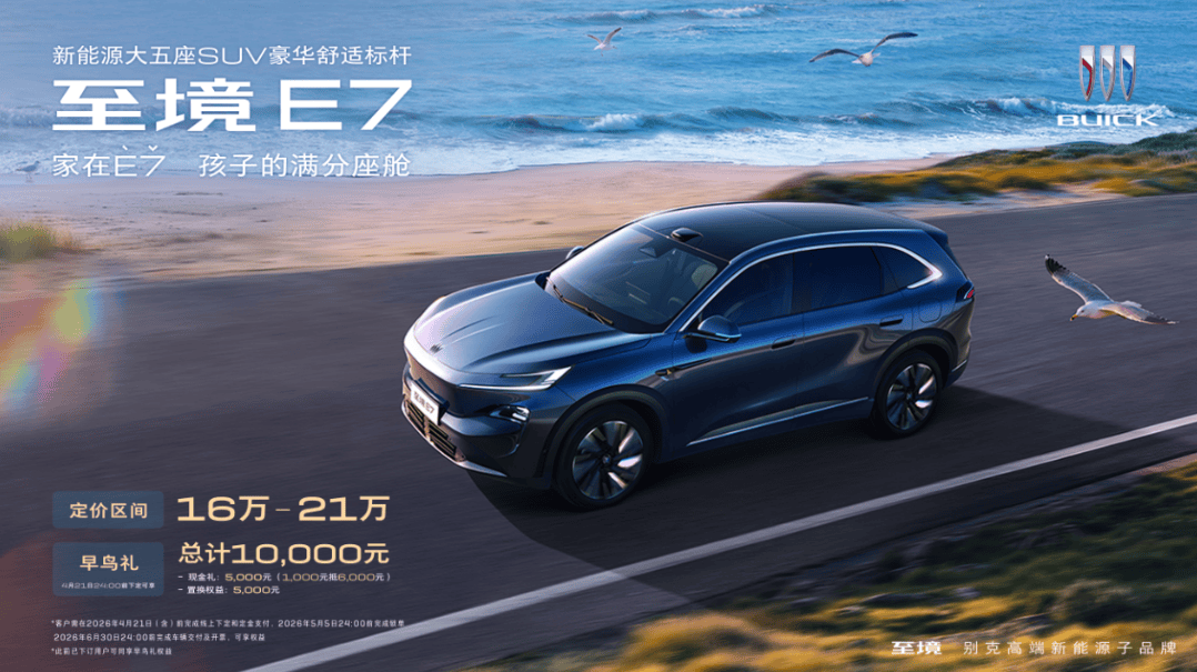 别克旗下高端新能源子品牌“至境”近日宣布,其首款SUV车型至境E7即将在2026第十九届北京国际汽车展览会上正式亮相。这款新车不仅将在北京车展A4号馆别克展台展出,还将现身A3号馆火山引擎展台,重点展示其智能座舱技术。据悉,至境E7将于4月22日公布售价并启动交付,即日起至4月21日24点前下订的消费者可享受限时早鸟权益。在外观设计上,至境E7采用了分体式星河展翼大灯组与驭风鲨鱼前脸设计语言,将东