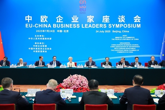 国务院总理李强7月24日下午在北京人民大会堂同欧盟委员会主席冯德莱恩共同出席中欧企业家座谈会。近60位中欧商会和企业负责人出席。双方企业家代表对中欧贸易投资合作充满信心,就加强中欧经贸合作提出意见和建议。在听取双方企业家代表发言后,李强表示,从中欧建交50年历程看,合作是中欧双方的唯一正确选择。回顾这半个世纪,中欧经贸合作展现出强大的内生动力。双边贸易额、双向投资总体保持较快增长,双方企业、民众都
