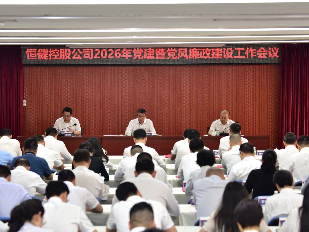 4月13日,恒健控股公司召开2026年党建暨党风廉政建设工作会议。会议坚持以习近平新时代中国特色社会主义思想为指导,深入学习贯彻党的二十大和二十届历次全会精神,全面落实二十届中央纪委五次全会、十三届省纪委五次全会工作部署,系统总结2025年公司党建和党风廉政建设成效,部署2026年重点任务,为坚定不移做强做优做大国有资本、加快建设一流国有资本运营公司凝聚共识、汇聚力量。公司党委副书记、董事、总经理