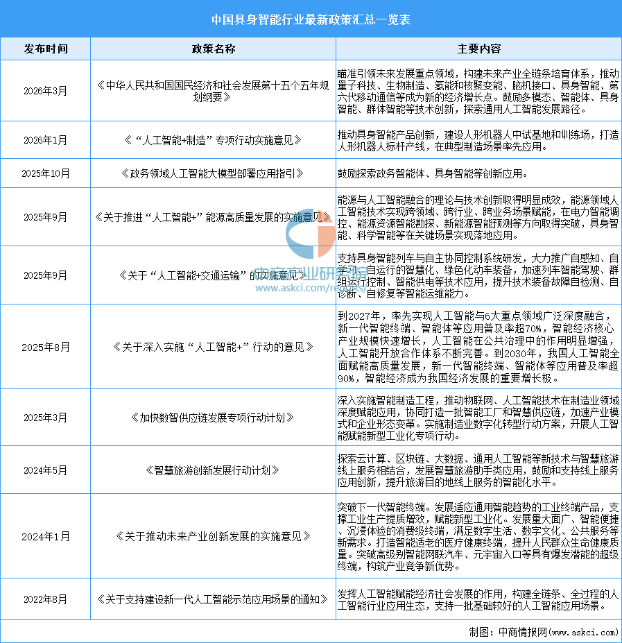 中商情报网讯:从工业机械臂的精准重复,到无人驾驶汽车的自主避障,再到人形机器人的灵巧操作,人工智能与物理世界的融合正以前所未有的速度演进。具身智能——这一赋予机器“身体”与“大脑”,使其能感知、理解并与环境动态交互的前沿领域,正从实验室走向产业化,被视为开启人工智能下一个黄金十年的关键钥匙。