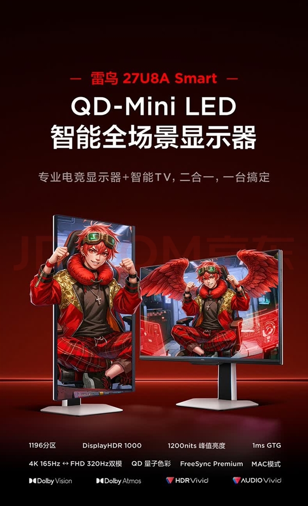 快科技4月16日消息,雷鸟公布U8A Smart系列QD-MiniLED智能全场景显示器,推出27U8A Smart(27英寸)与雷鸟32U8A Smart Pro(31.5英寸)两款机型,现已开启预售: 27英寸27U8A Smart2499元起;31.5英寸32U8A SmartPro3999元起。 该系列产品是雷鸟推出的专业电竞显示器+智能TV二合一产品,主打全场景使用,既满 足高刷电竞需求