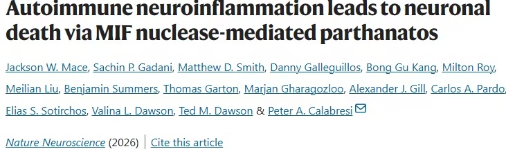 MS研究重大突破!Nat Neurosci首次揭示免疫反应触发“parthanatos”,导致神经元死亡