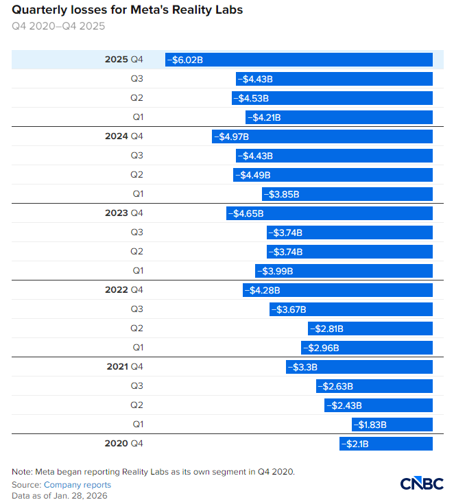 文/VR陀螺 2021年,Facebook将公司名称改为Meta,作为其重大品牌重塑计划的一部分,公司为此投入数百亿美元,试图构建以XR为核心的下一代计算平台,扎克伯格甚至曾提出“在十年中促使虚拟世界覆盖10亿人”的愿景,而“元宇宙”一度是全球科技行业最炙手可热的关键词。 然而,技术落地的速度远比愿景更为复杂。随着2023年AI的迅速发展,资本与舆论的焦点转向AI,元宇宙最终被AI和智能眼镜的热度