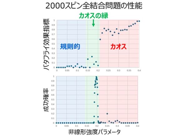 「カオスの縁」を有効活用し、成功確率を飛躍的に向上 東芝は2026年4月、独自の量子インスパイア―ド組み合わせ最適化計算機「シミュレーテッド分岐マシン(SBM)」における成功確率を、ほぼ100%まで向上させる新アルゴリズムを開発したと発表した。しかも、前世代のSBMに比べ10〜100倍の高速化を実現した。 東芝は、シミュレーテッド分岐アルゴリズム(SBアルゴリズム)を2019年4月に発表。2021