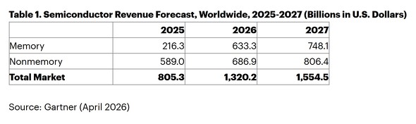 米国の市場調査会社Gartnerは2026年4月8日、2026年の世界半導体市場の予測を発表した。それによると、2026年の世界半導体売上高は、前年比で64%成長し、1兆3000億米ドルを超える見込みだ。この成長率は過去20年間で最大だという。 世界半導体売上高の予想[クリックで拡大]出所:Gartner GartnerのシリアプリンシパルアナリストであるRajeev Rajput氏は「AI処理や