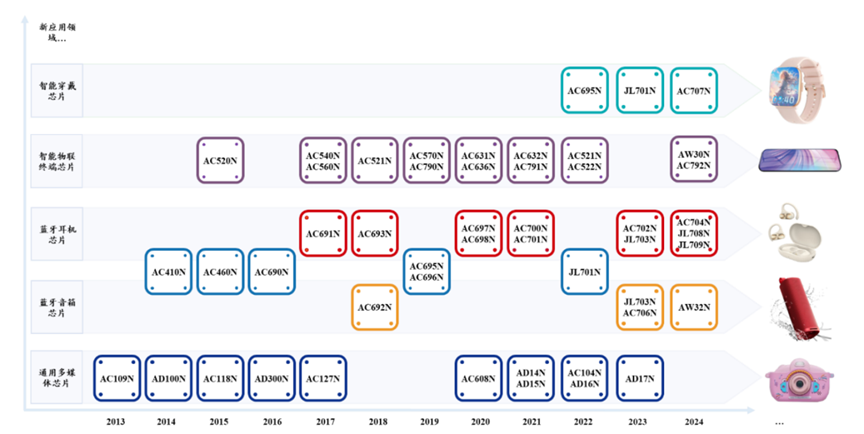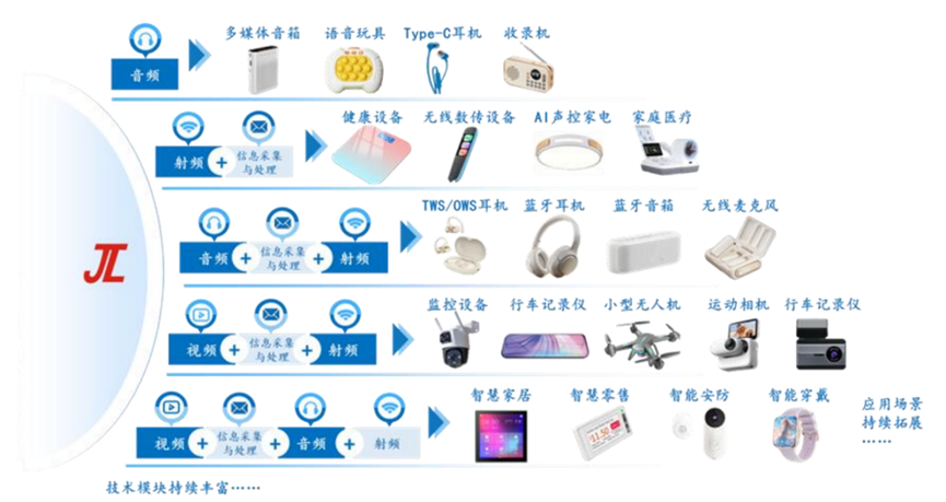 与行业内多数企业采取的渐进式发展策略不同,杰理科技在创立之初便确立了一条更具前瞻性的技术路径——从单一音频模块起步,有计划地逐步引入射频、视频、信息采集等多元化技术模块,并对这些模块进行深入研究与交叉复用,最终构建起品类丰富的SoC芯片产品线。