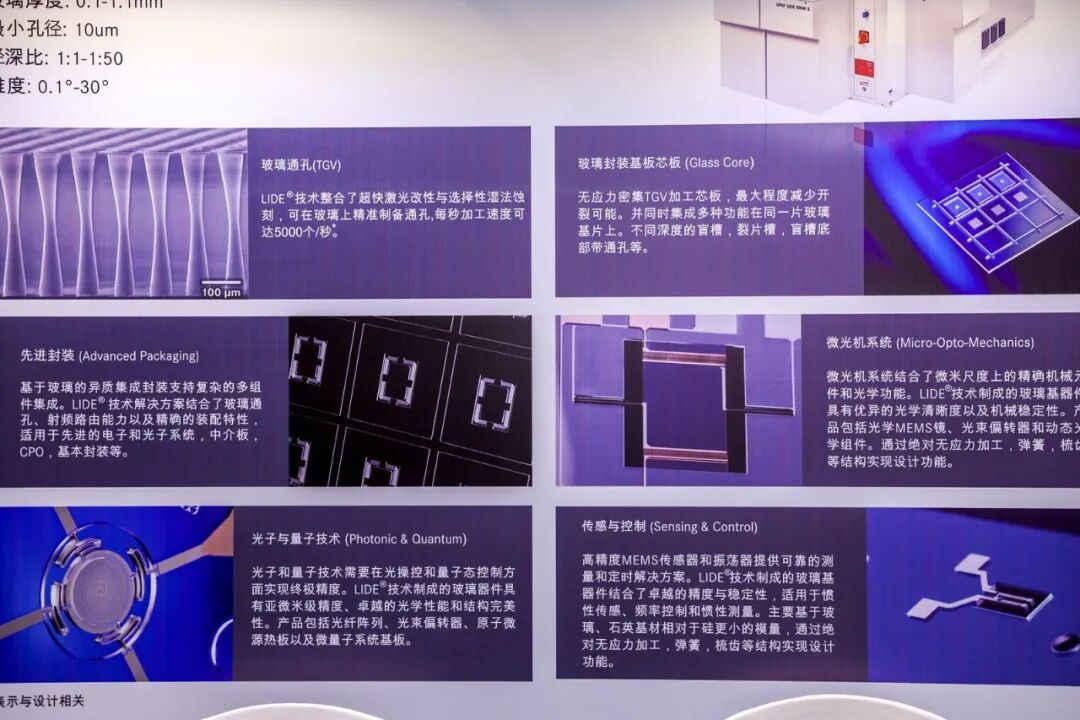 如何实现无缺陷、高精度、高效率且具成本效益的玻璃微加工,一直是制约玻璃基板规模化应用的瓶颈。在本次论坛上乐普科发表了题为《LIDE技术More than TGV》的主题演讲。报告深入介绍了其自主研发的激光诱导深刻蚀(LIDE)技术,展示了该技术不仅能解决高深宽比通孔(TGV)的加工难题,更能在玻璃基板上实现超越TGV的、更具柔性的微结构加工能力。