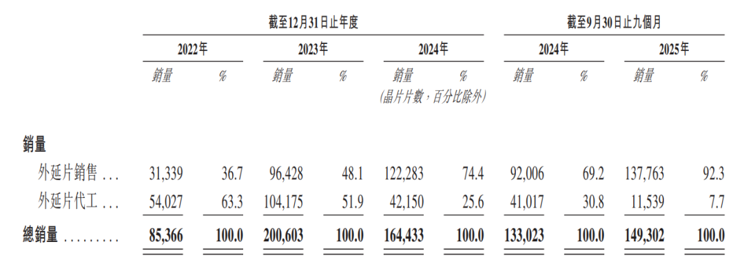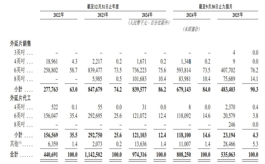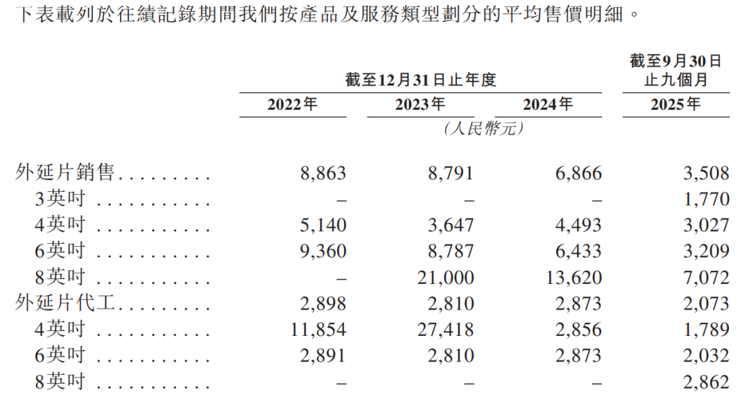 外延片代工的平均售价亦在逐步下降,6英寸外延代工从2022年的为2891元/片降至2032元/片(截至2025年9月),8英寸外延的代工价格则为2862元/片(截至2025年9月)。