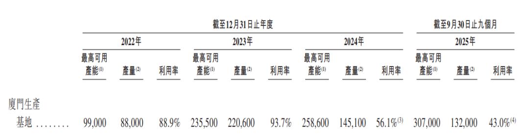 目前,瀚天天成在中国厦门设有一个生产基地。于往绩记录期间,瀚天天成2022年的产量达到8.8万片,而2023年、2024年及截至2025年9月30日止九个月分别为22.3万片、14.51万片及13.2万片。