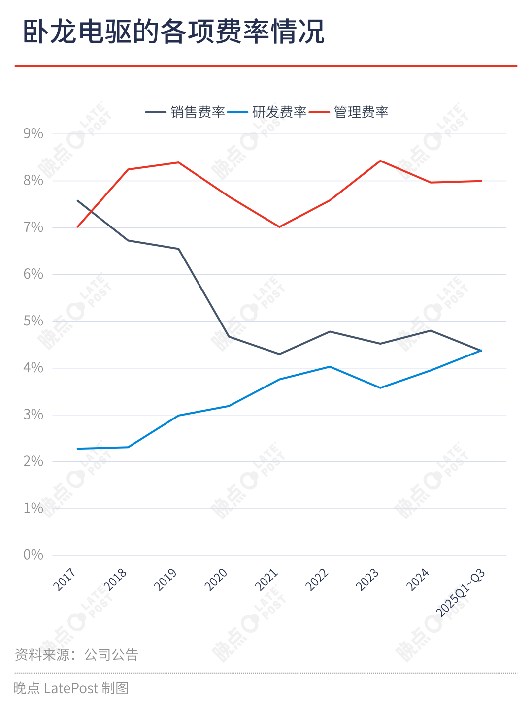 双方这种内在的相互窥探和依附关系导致其产品没能获得持续的技术精进,卧龙的产品在性能、能耗、成本等综合维度上要落后于其他参与者的产品表现,这使得卧龙的新能源交通电驱动业务规模从 2022 年的 6.5 亿元下滑至 2024 年的不足 4 亿元,且 2024 年该业务的毛利率更是降至 1.1%。