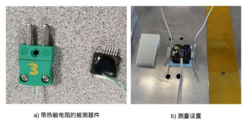 为实现精确测量结温,MOSFET封装经激光去盖处理,暴露出内部的硅裸芯。随后,将热电偶直接固定在裸芯表面以实时采集温度数据。传感器安装完成后,使用MG Chemicals 832HT-A[5]高温环氧树脂重新密封封装,以保持器件的机械完整性和热特性。