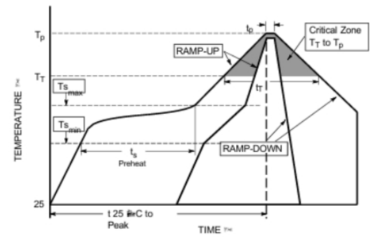 • 本文档中的回流温度曲线仅用于分类或预处理,并不直接规定实际PCB装配的回流工艺参数。实际的板级装配回流曲线应根据具体工艺需求和