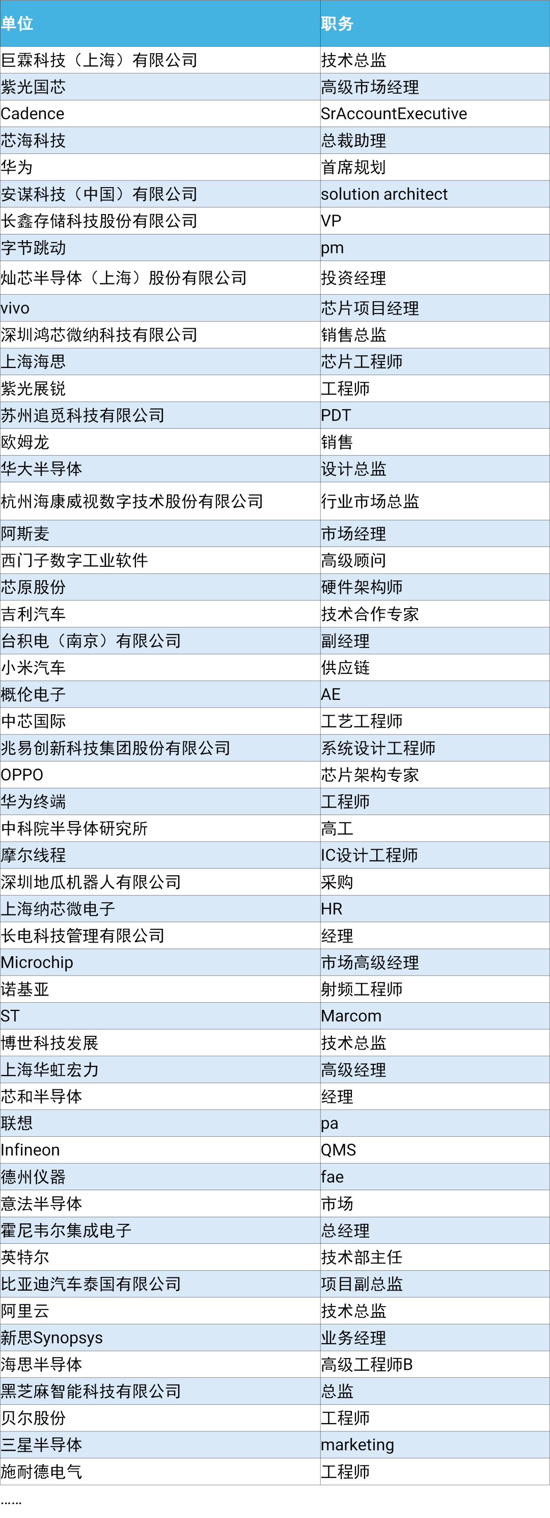 目前已有来自华为、英特尔、安谋科技、紫光国芯、VIVO、OPPO、欧姆龙等全球及国产顶尖半导体企业的核心骨干踊跃报名,覆盖技术研发、市场销售、供应链、投资、管理等产业链关键岗位,还没报名的朋友速冲IIC——电子人的专属高端精准交流平台。