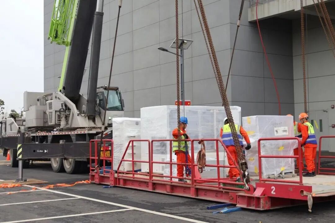 设备搬入期间恰逢降雨,给现场作业带来严峻挑战。面对困难,和熠团队迎难而上,冒雨作业,从现场指挥到技术人员紧密协作,确保了33台、总重约480吨的设备安全、精准地搬入指定位置。此次设备搬入的成功,离不开项目团队的精心策划和高效执行,展现了和熠人使命必达的责任担当。