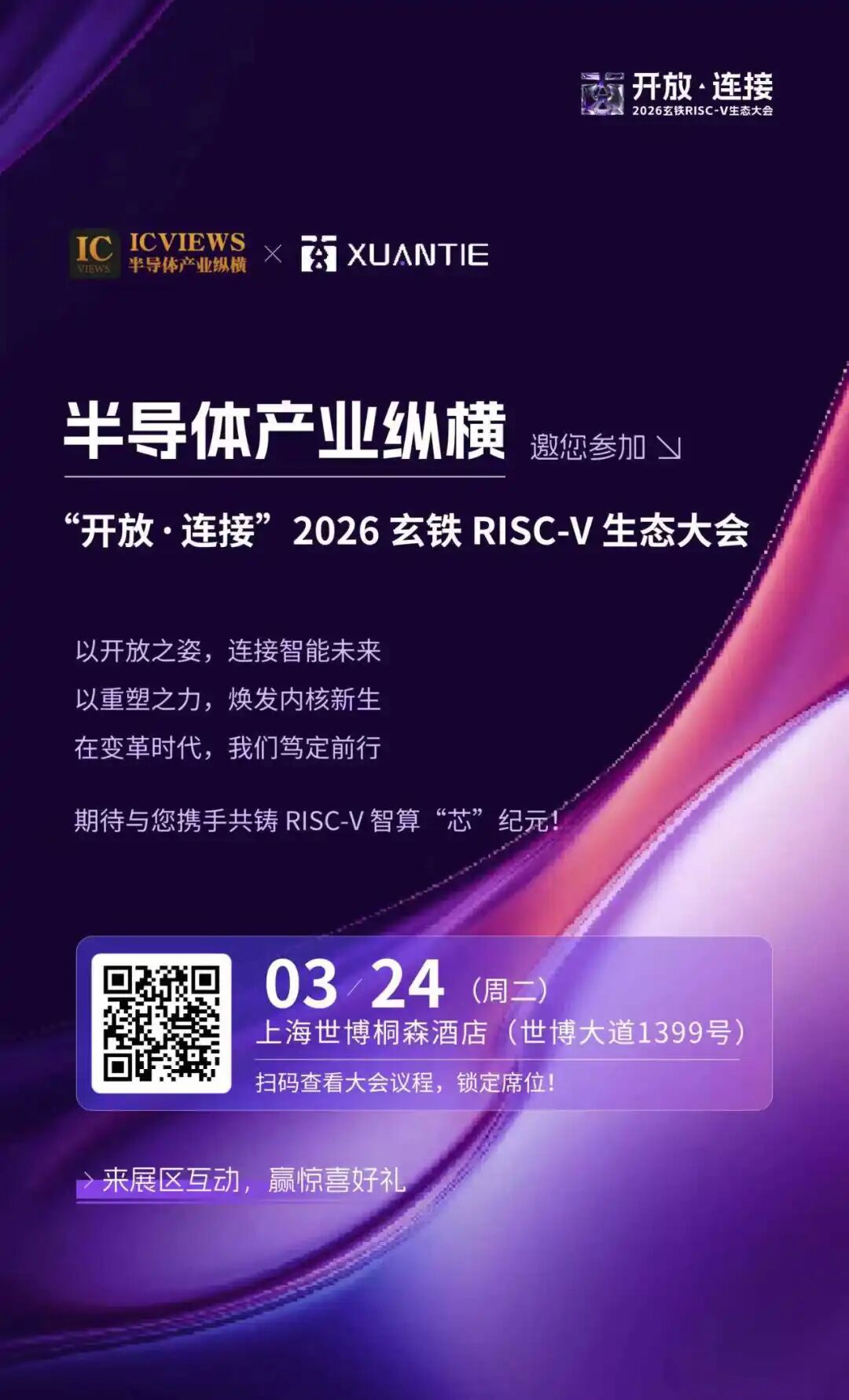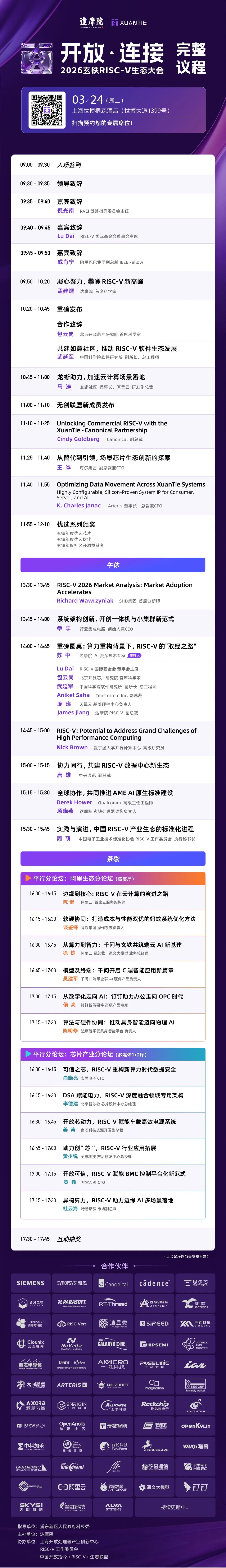 2026 年 3 月 24 日,由浦东新区人民政府科经委指导,达摩院主办,上海开放处理器产业创新中心、RISC-V 工作委员会、中国开放指令(RISC-V)生态联盟联合协办的本届玄铁 RISC-V 生态大会,将在上海世博桐森酒店盛大启幕。