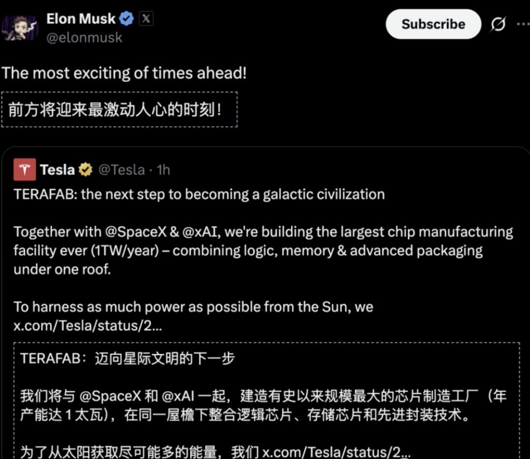 🔥马斯克贴脸开大:史上最大晶圆厂TeraFab开建