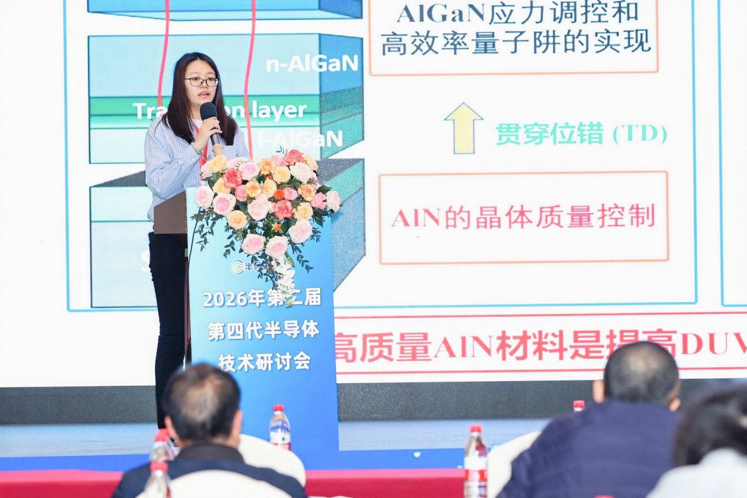 万青,甬江实验室功能材料与器件异构集成研究中心主任梁剑波,国家第三代半导体技术创新中心(苏州)异质集成先进键合技术研发中心主任 /苏州晶和半导体科技有限公司 技术总监《备战产业化:超宽禁带半导体AlN材料及其器件规模化应用展望》分会场报告主要划分了氧化镓分论坛、金刚石分论坛、氮化铝分论坛三个部分,国内外的专家学者就氧化镓、金刚石和氮化铝的晶体生长、薄膜技术、器件性能等关键议题进行交流。《面向高温(250℃)、高压(10000 V)、高功率(MW)氧化镓功率器件及模块研究》张宇昊,香港大学先进半导体与集成电路研究中心副主任、教授(巩贺贺代讲)《基于SAM结构的高增益氧化镓雪崩光电探测器的研制》孙华锐,哈尔滨工业大学(深圳)前沿学部理学院教授、副院长游天桂,中国科学院上海微系统与信息技术研究所,研究员/副主任(赵天成代讲)《高性能大面阵氧化镓异质结日盲紫外探测器芯片研究》《金属氧化物半导体在宽禁带半导体产业发展中的研究及建议》麻尧斌,中国电子信息产业发展研究院 集成电路所 高级工程师|研究室主任齐红基,杭州富加镓业科技有限公司 董事长(陈端阳代讲)《超宽禁带半导体氧化镓功率器件的电场调控方案研究》郁鑫鑫,中国电科碳基电子重点实验室/南京电子器件研究所/南京大学 高级工程师《从原子键合到宏观热管理:AlN/金刚石异质界面的多尺度模拟与性能调控》《面向功率电子器件的电子级单晶金刚石研究挑战与进展》《功率器件用多晶/单晶金刚石材料的制备及性能调控研究》王跃忠,中国科学院宁波材料技术与工程研究所 研究员《大口径光学级金刚石PV1/10λ 高精度高效率加工技术研究》程红娟,中国电子科技集团公司第四十六研究所宽禁带副主任、研究员《氮化铝极性/非极性晶面的生长习性差异与加工特性关联研究》《面向GFJG领域的氮化铝半导体材料的研究应用展望》