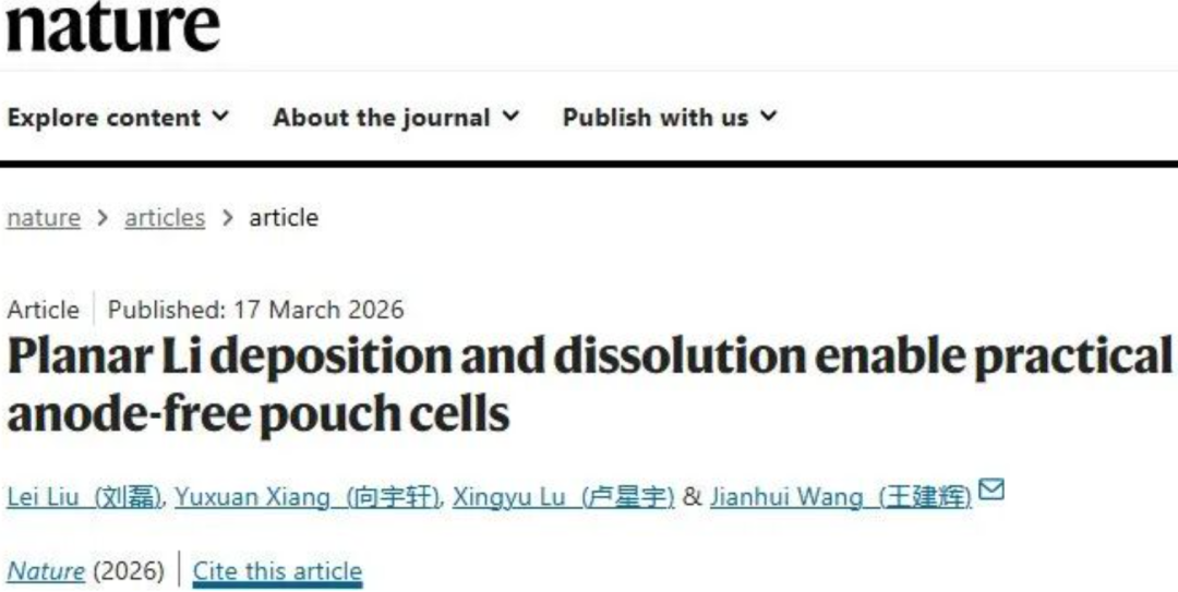 Liu, L., Xiang, Y., Lu, X. et al. Planar Li deposition and dissolution enable practical anode-free pouch cells. Nature (2026).