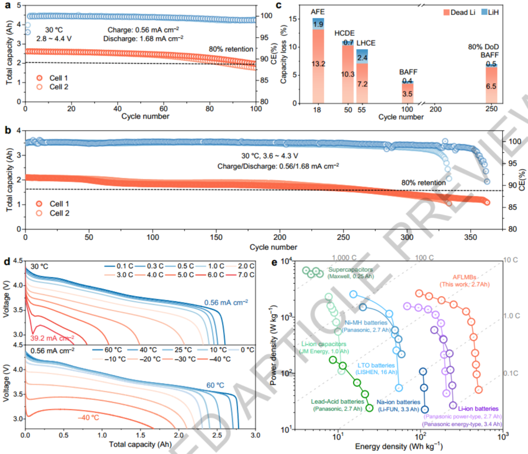 实用化500 Wh/kg AFLMB的性能表现