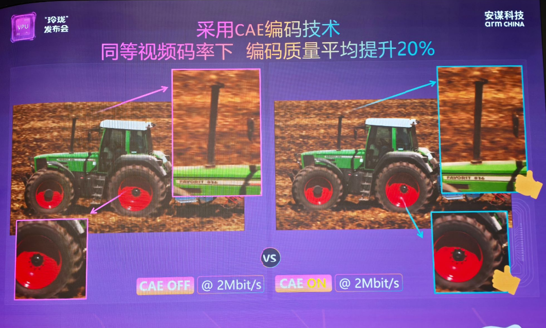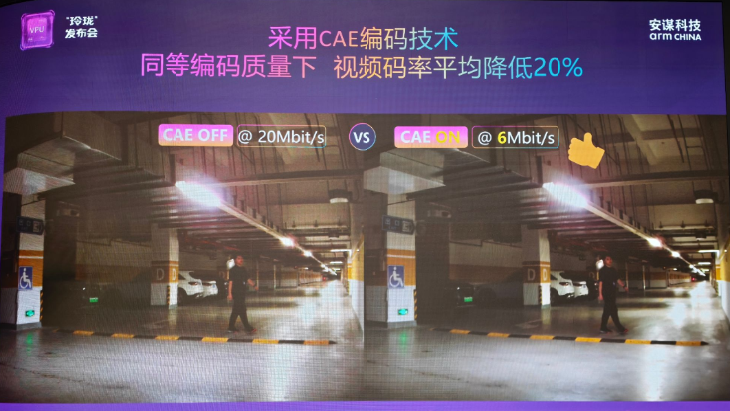 例如,现场演示了“玲珑”V560/V760 CAE编码的效果:在CAE的加持下,前处理过程中,可以智能识别到需要重点处理的敏感对象;同时同等视频码率下,编码质量平均提升20%;此外,同等编码质量下,视频码率平均降低20%,特定场景下码率最大可降低80%。