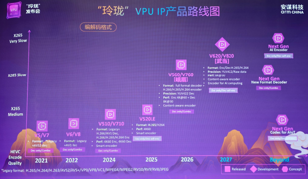 目前,“玲珑”系列已有多款面向不同视频应用的自研VPU IP产品,全新推出的“峨眉”作为第五款产品,是安谋科技Arm China “All in AI”产品战略指引下的最新自研成果,能够出色应对AI技术爆发所带来的海量视频数据编解码加速需求,为AI时代的视频应用提供核心技术支撑。