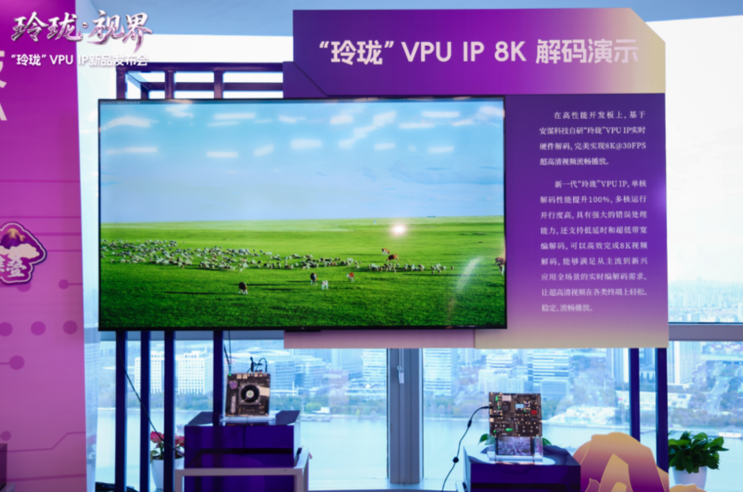 现场还展示了8K解码效果,在高性能开发板上,基于“玲珑”V560/V760实时硬件解码,完美实现8K30FPS超高清视频流畅播放,以及搭载“玲珑”V560/V760的运动相机实时拍摄和成片效果,可以实现每一帧稳定、不丢帧、不延迟。