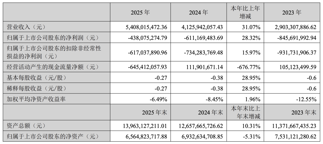京东方华灿光电股份有限公司发布2025年年度报告,2025年,公司实现营业总收入54.08亿元,同比增长31.07%;归属于上市公司股东的净利润为-43,807.53万元,较上年同期上升17,309.42万元。