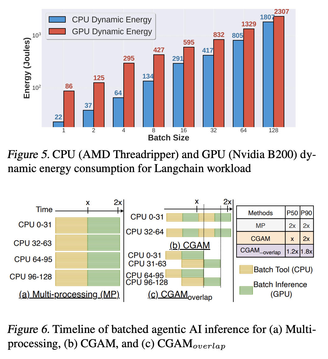 Georgia Tech与Intel一篇针对Agent系统的最新研究,对Haystack RAG、Toolformer、ChemCrow、LangChain和SWE-Agent五类代表性负载做了系统级剖析,结论是:CPU侧的工具处理,最多可以占到总延迟的90.6%;在大批量场景下,CPU动态能耗最高可占总动态能耗的44%。说到底,GPU决定模型会不会想,CPU决定系统会不会干。