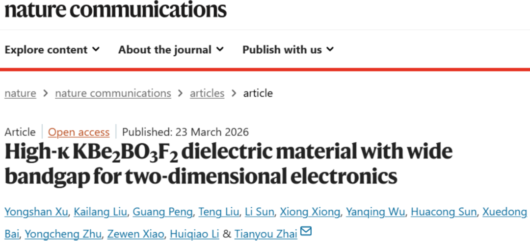 华中科技大学,用于二维电子器件的宽带隙KBe2BO3F2介电材料!Nature Communication