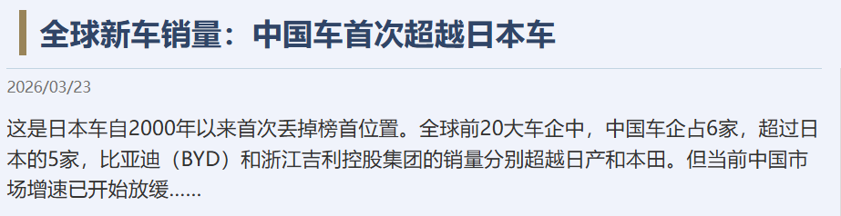 中国车企全球销量登顶,首次超越日本车企