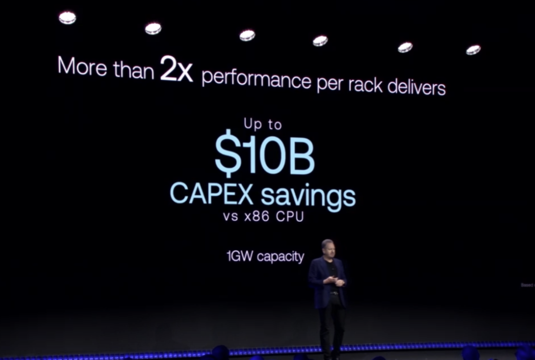 Arm还指出,基于Arm AGI CPU,每1吉瓦 AI 数据中心算力的资本支出 (CAPEX) 相比x86 CPU平台可节省高达 100 亿美元。