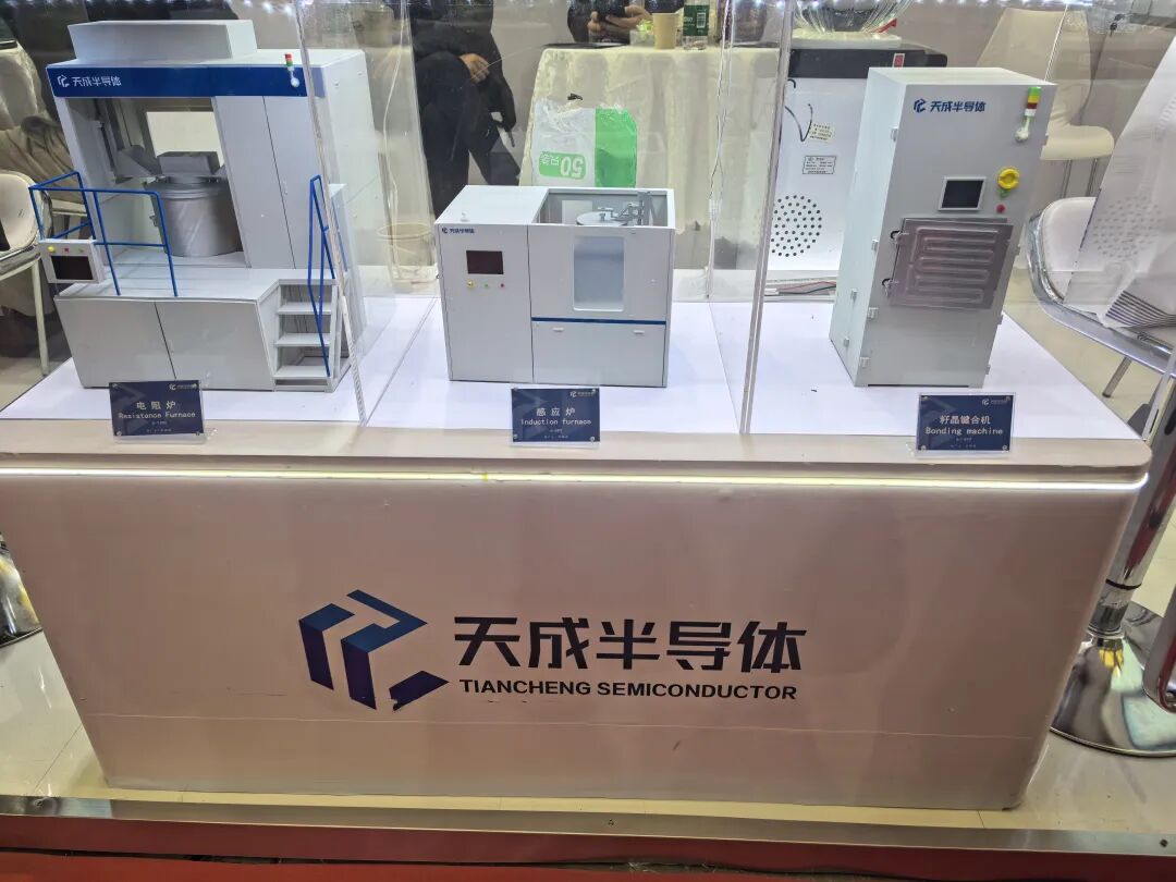 天成半导体重点展示了12英寸光波导晶锭(厚度28mm)、12英寸导电晶锭(厚度30mm)、偏角2°的8英寸晶锭,以及各类规格的籽晶。此外,现场还展出了8–14英寸长晶及配套设备,其技术实力与未来发展潜力吸引了众多参会人士的广泛关注。