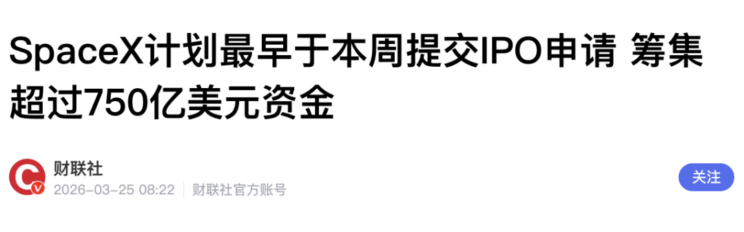 这速度,比常规IPO快了不止一点半点,马斯克这效率,是真的想赶紧把这波资本红利攥手里啊!