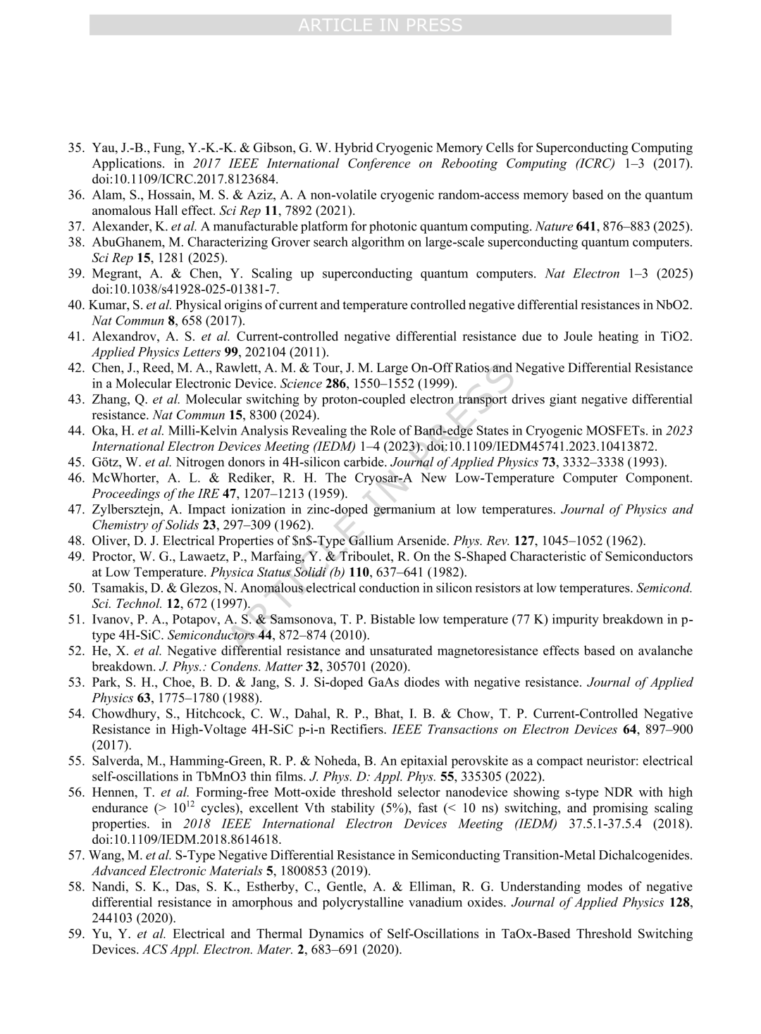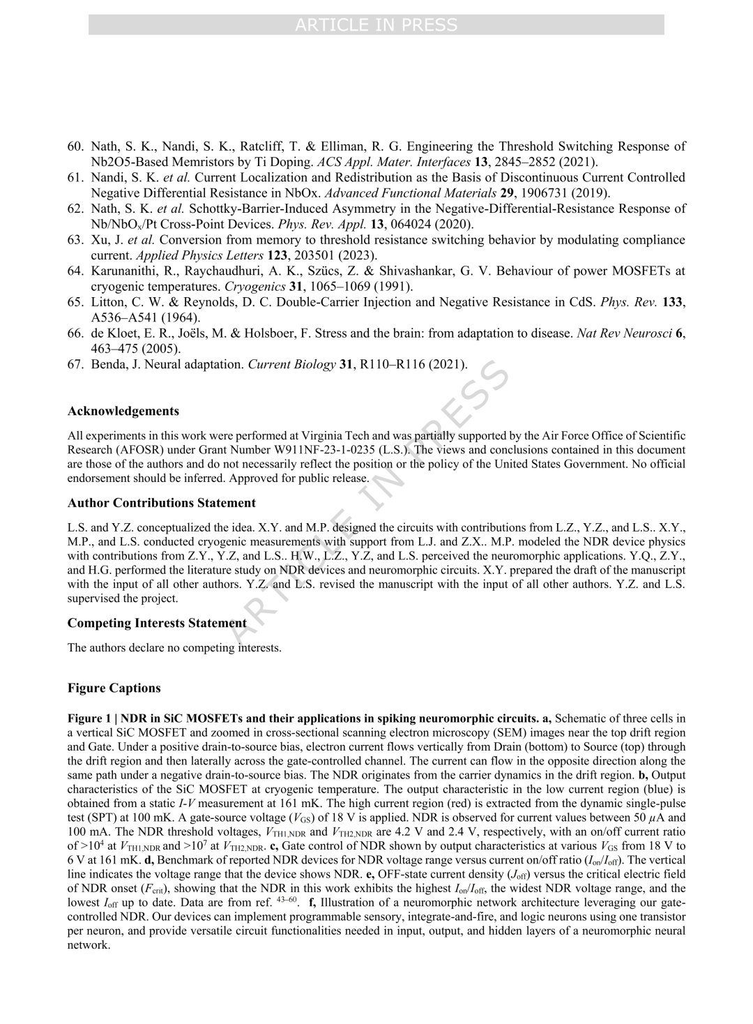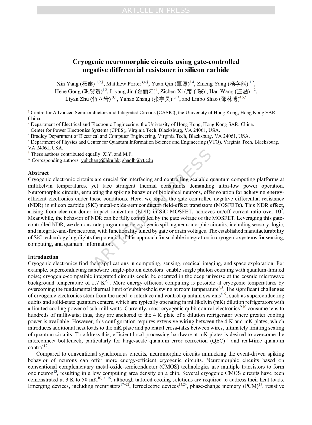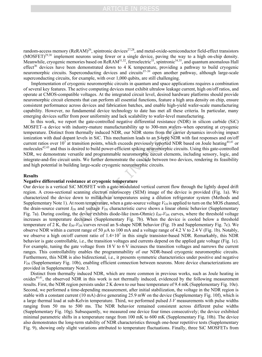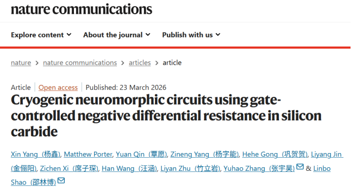 论文连接:Yang, X., Porter, M., et al. Cryogenic neuromorphic circuits using gate-controlled negative differential resistance in silicon carbide. Nat Commun (2026)..