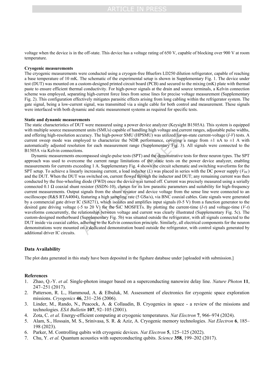 香港大学、弗吉尼亚理工Nature Commun.:基于碳化硅MOSFET的极低温神经形态电路