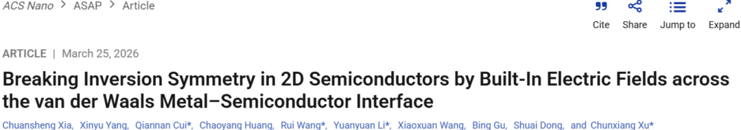 东南大学/南京信息工程大学,通过范德华金属-半导体界面上的内置电场打破二维半导体中的反转对称性!ACS Nano