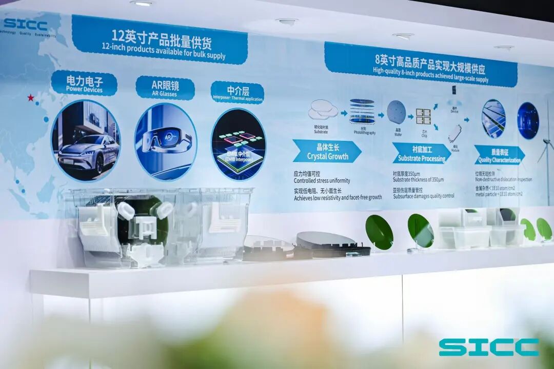 衬底材料作为第三代半导体核心基础,成为本次展会焦点,国内企业在大尺寸碳化硅衬底领域突破显著,彰显国产材料技术跃升与产业化实力。