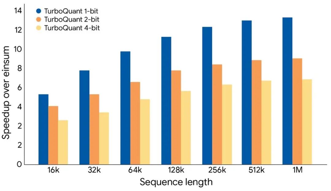 根据实测,在英伟达(NVIDIA)H100加速器上,TurboQuant相比未压缩方案,性能最高提升了8倍,且无须重新训练模型即可直接挂载,堪称AI部署的降本增效的“神兵利器”。
