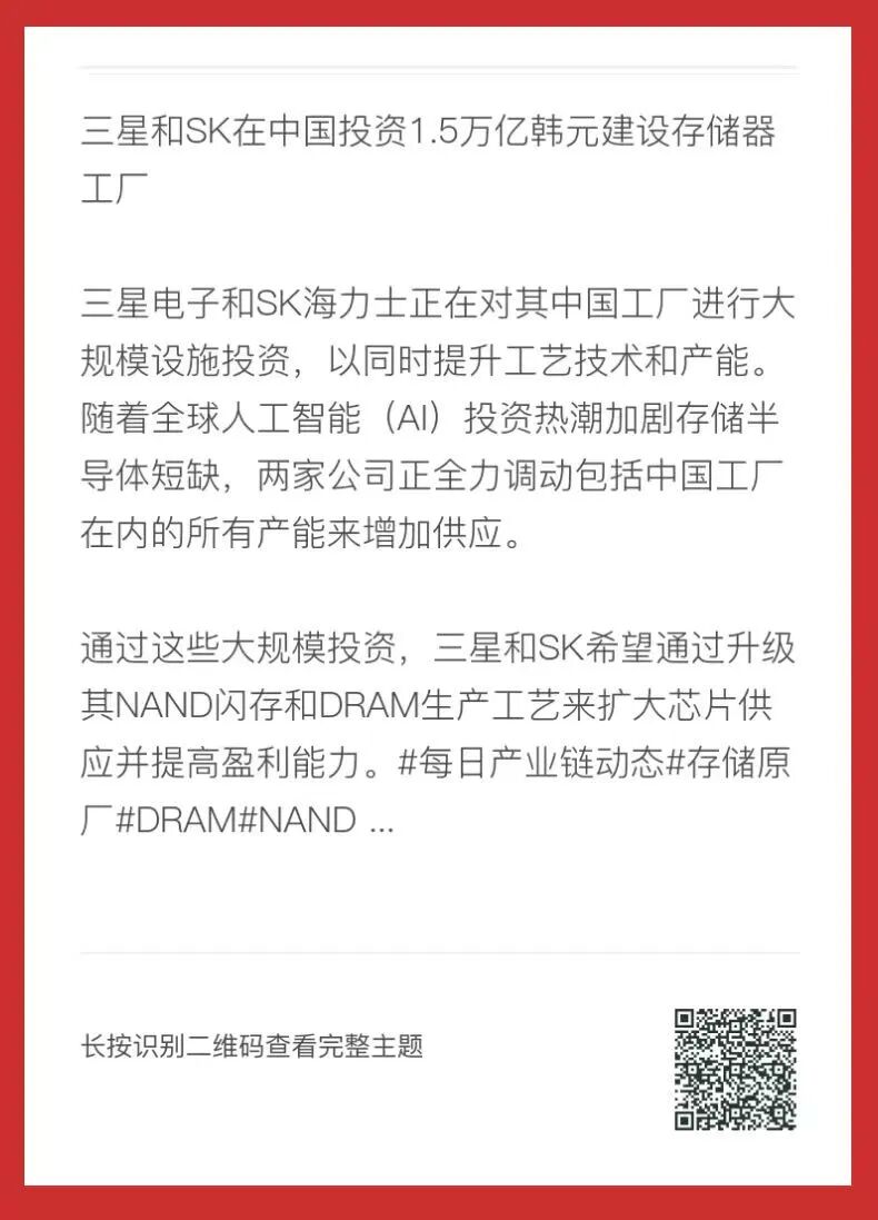 模组大厂合约价涨价40%;未来还要涨;韩国两大巨头投资超一万亿,加大对华建设