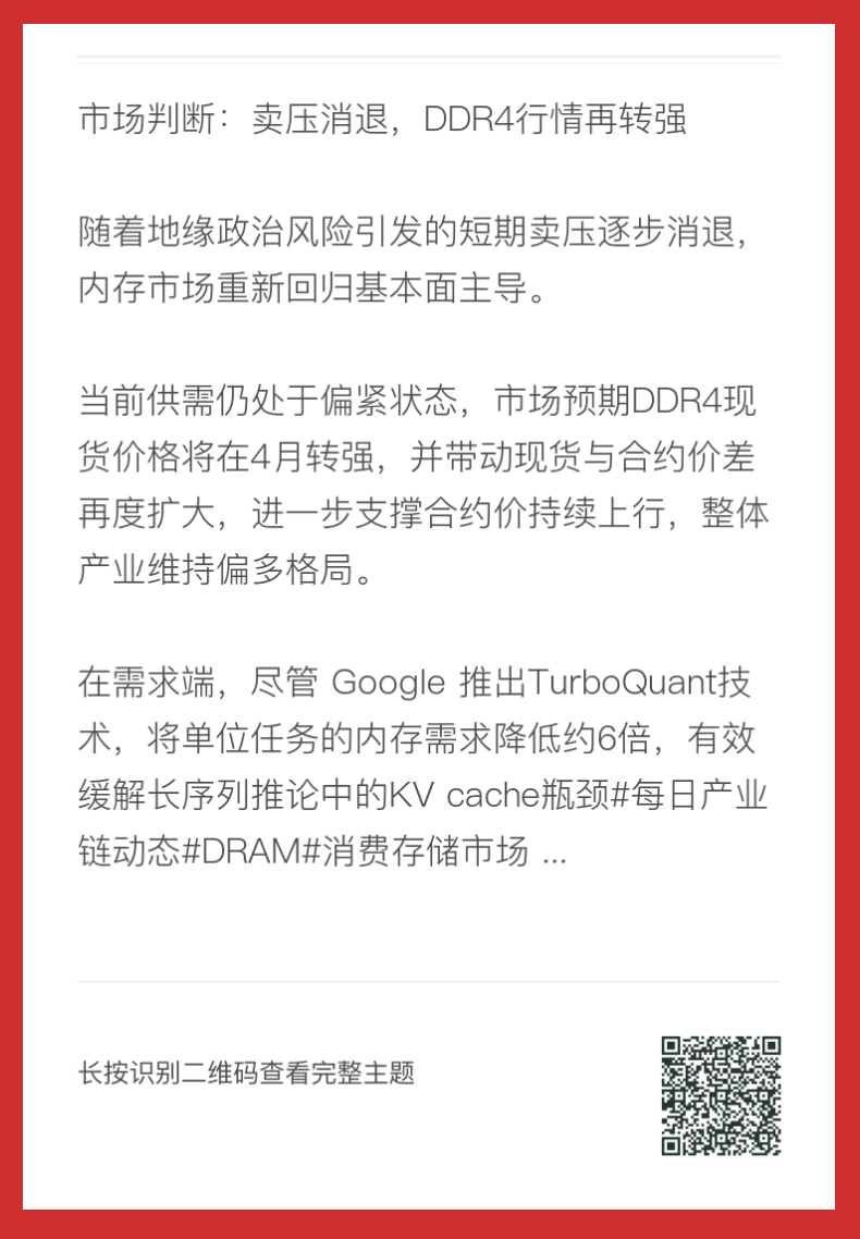 引发这波降价的关键,疑似是谷歌近期推出的TurboQuant压缩算法,可将AI工作负载的内存需求降低最高6倍。