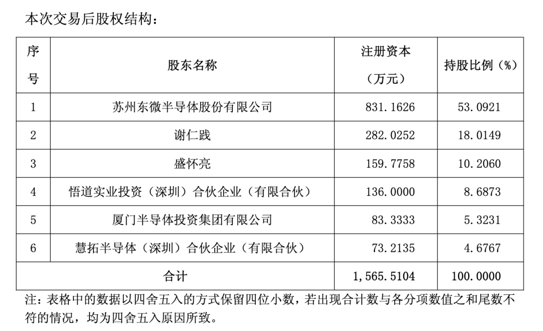 在上述交易完成后,东微半导还拟通过公开摘牌方式受让剩余国资股东(厦门半导体投资集团有限公司)持有的慧能泰5.3231%的股权,能否成功取得上述股权尚存在不确定性。交易完成后,除厦门半导体投资集团外,其余历史投资人将悉数退出,东微半导对慧能泰的持股比例预计将超过58%。