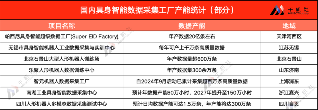 国内部分具身智能数据采集工厂--产能统计