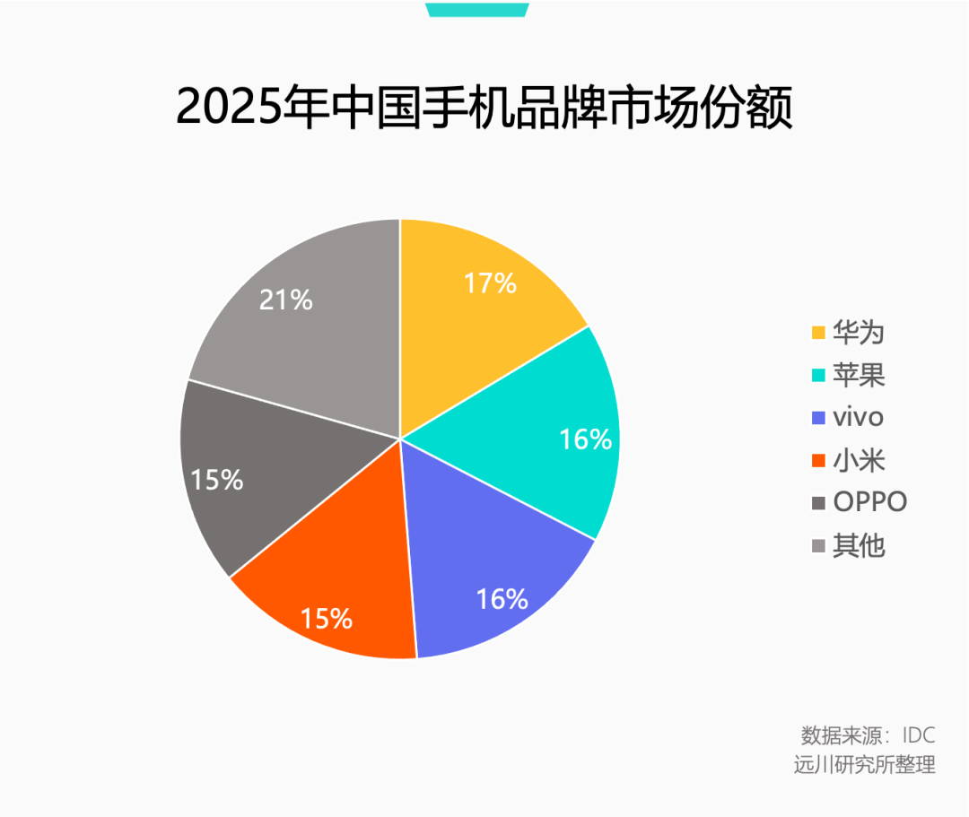 2016年,中国手机前五大厂商市场份额合计66.5%(IDC口径);到了2025年,这个数字变成了79.4%(IDC口径)。没了二线品牌当缓冲层,涨价就成了必然。
