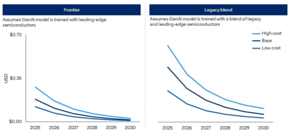 前沿场景:模型处理基于对未来的尖端芯片的性能预估,成本下降幅度最为显著。