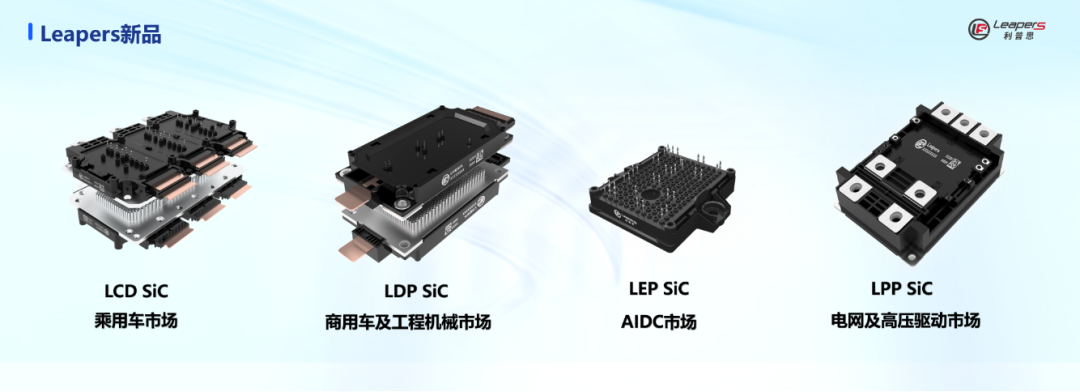 聚焦技术层面,依托扬州生产基地的先进制造能力,利普思CTO洪文成在峰会上发布LCD、LDP、LEP、LPP四款SiC新模块产品,分别对应乘用车、商用车及工程机械、AIDC、电网及高压驱动四大细分市场,展现出利普思对不同应用场景需求的精准适配能力与差异化产品布局思路。