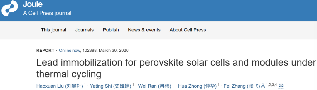天津大学,热循环下钙钛矿太阳能电池和组件的铅固定!Joule
