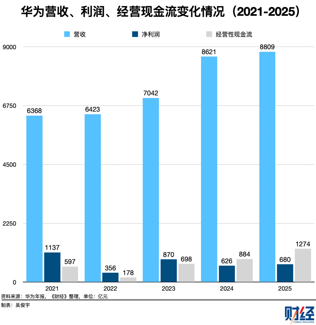 到2025年,华为经营活动现金流达到1274亿元,资产负债率降至55.0%,财务状况为五年来最佳。