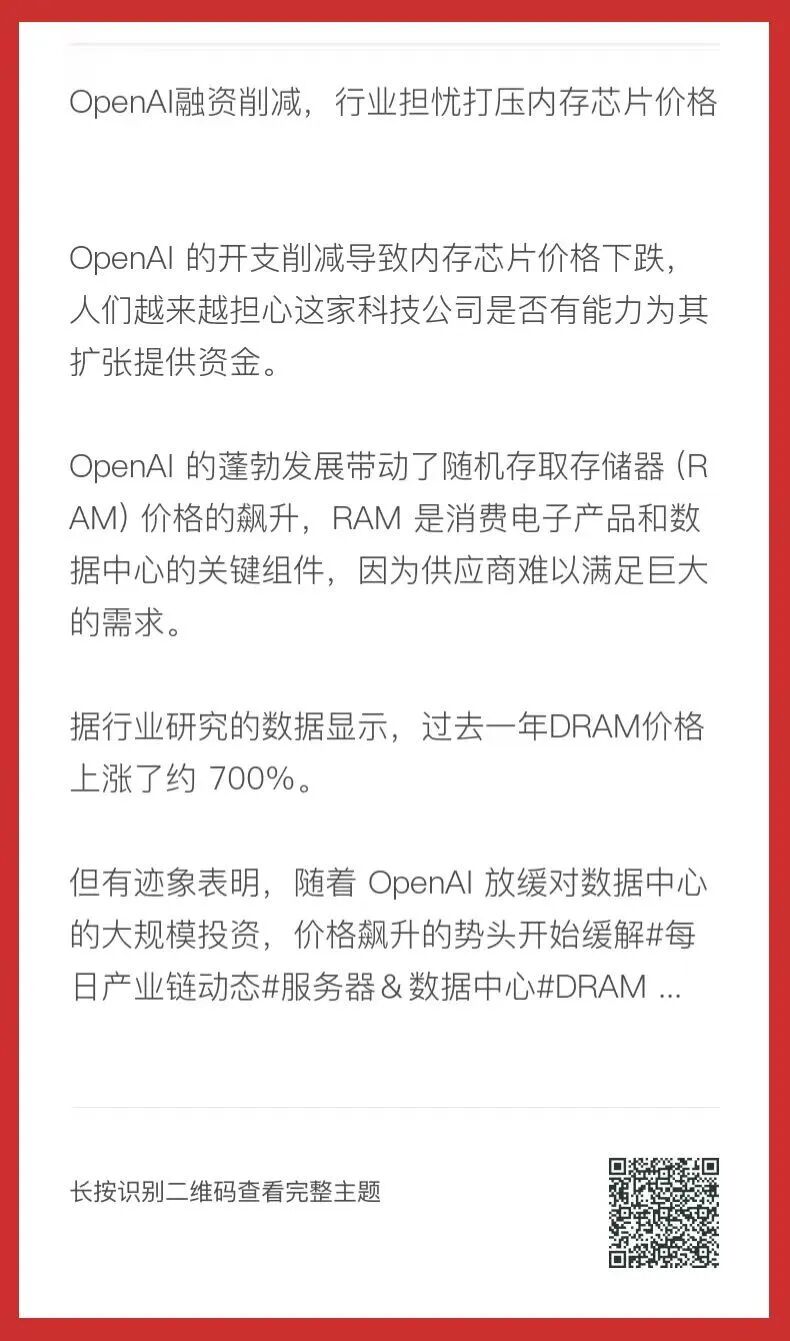 AI大厂砍单收缩开支,DRAM开始进入降温阶段;DDR4供应紧张逐步缓解