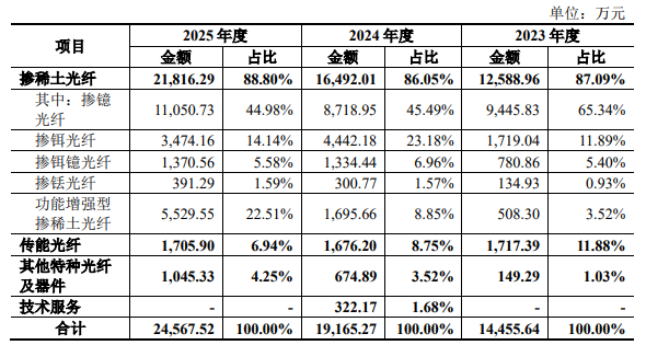 长进光子是国内领先的特种光纤厂商,具备高性能、多品类特种光纤的研发与产业化能力,有力推动我国特种光纤技术的自主可控与国产化进程。其主要产品掺稀土光纤是特种光纤的重要子类,是激光产业链上游核心