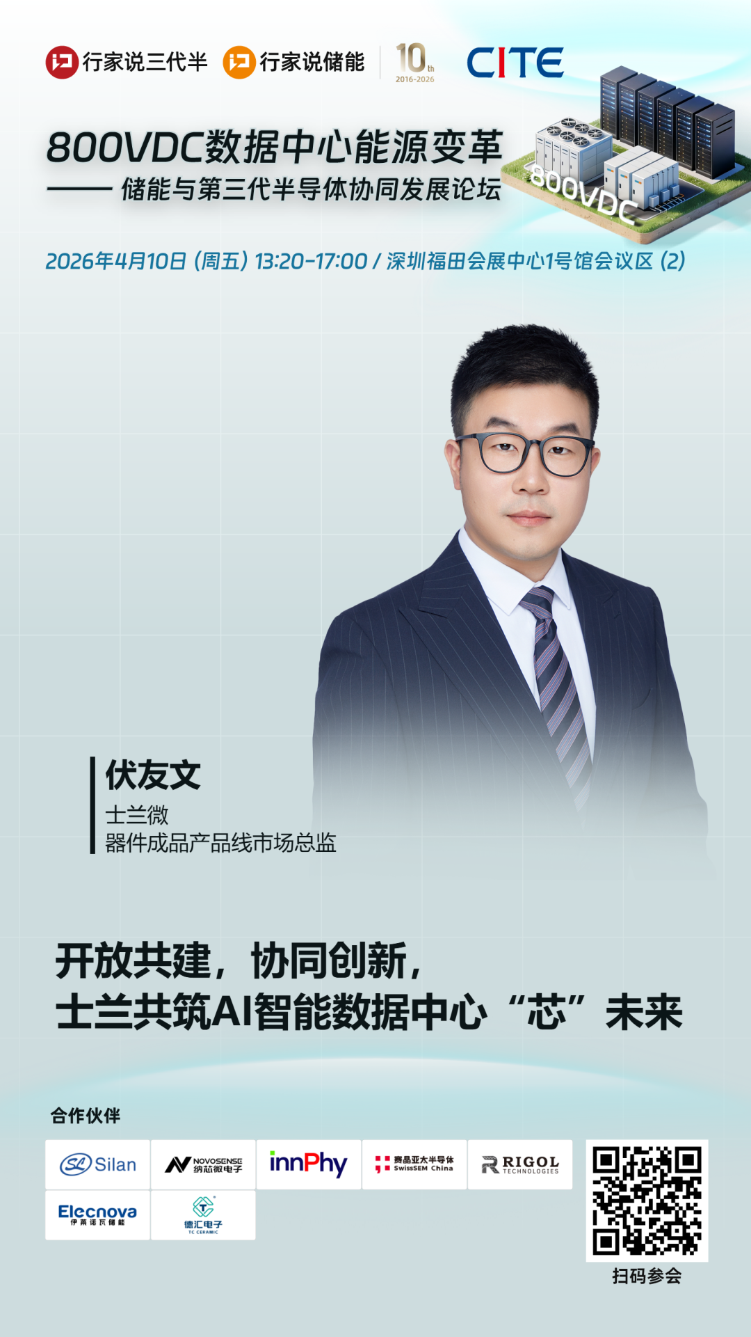 如需深入了解士兰微在数据中心电源领域的战略布局与技术突破,欢迎扫描下方海报二维码报名参会,与士兰微共同探讨800VDC数据中心的发展前景!
